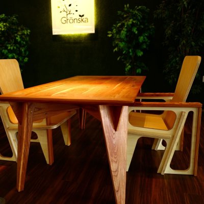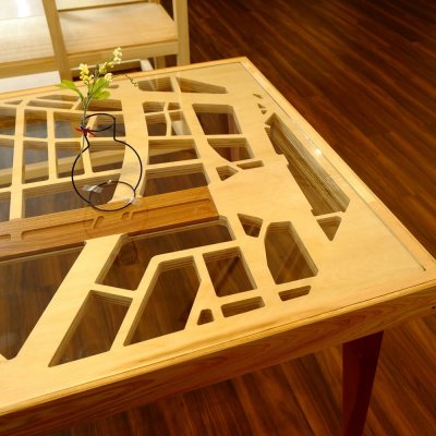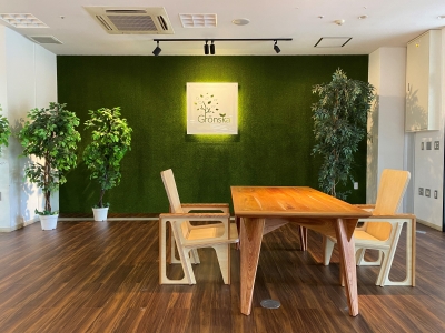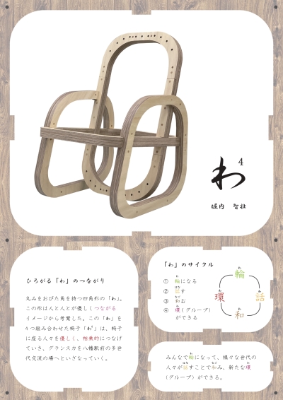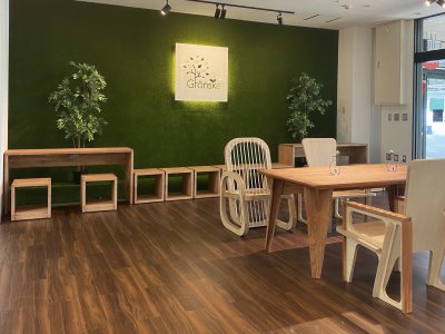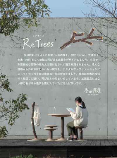 そして2021年4月、さわらびガーデンモール八幡 一番街 1階に大学院生有志4名のデザインによる「ケヤキを再活用した家具の制作、設置」を行うことで、ケヤキのアップサイクルを実現させました。