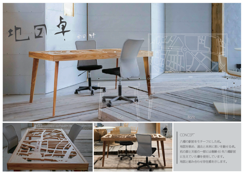北九州市立大学 国際環境工学研究科 環境工学専攻 建築デザインコース 福田研究室とともに、この八幡駅前のアイコンでもあるケヤキを再活用できないかと検討を重ねてきました。