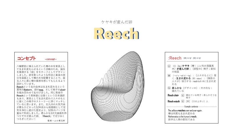 一度は伐採されてしまったケヤキに新しい命を吹き込むことで、生まれ変わった姿で八幡のまちを、私たちを見守ってもらうとともに、ケヤキが生かされた家具を利用する多くのひとたちが、五感で八幡を感じることができる新たな空間が誕生しました。
